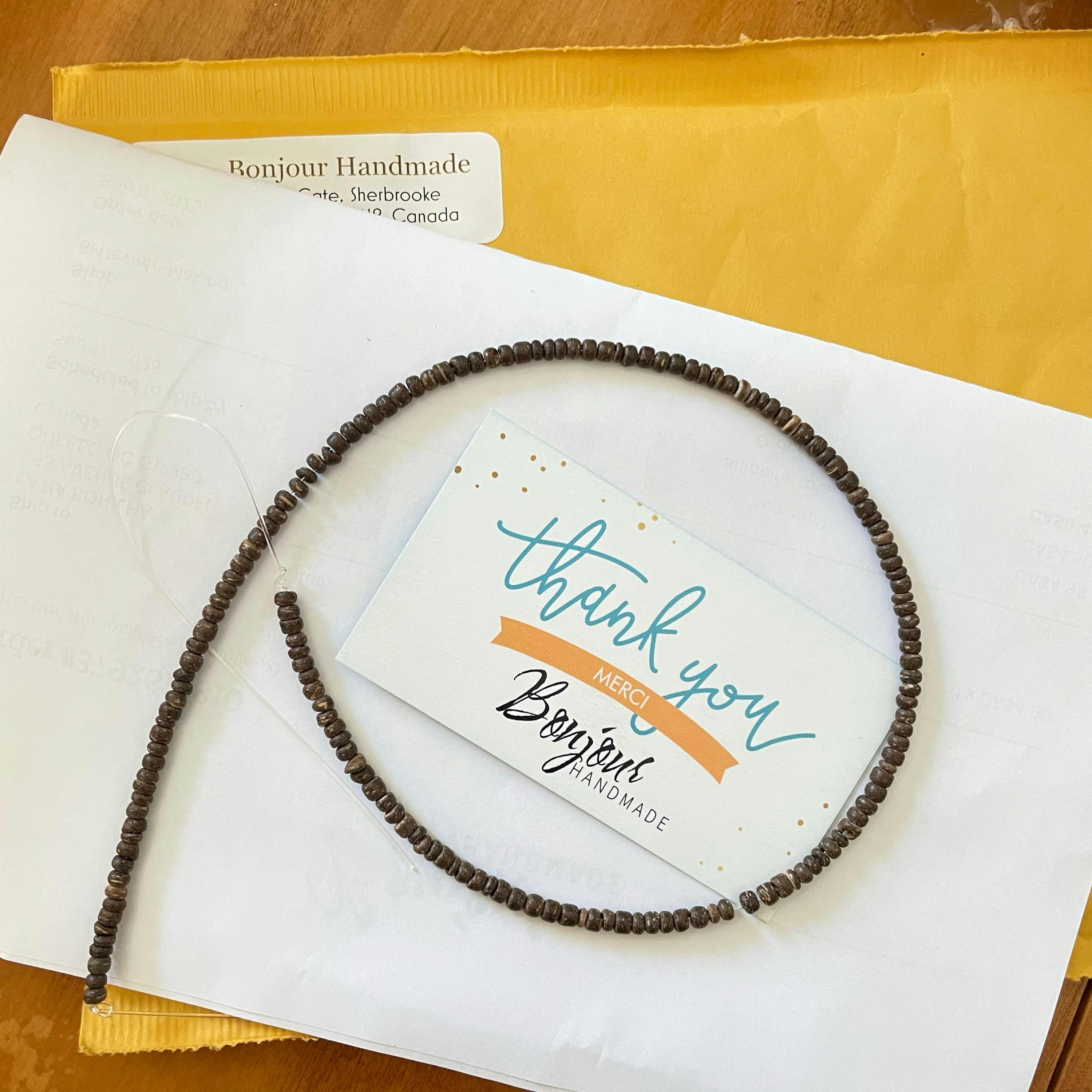 Perles de bois naturel de 2-3mm. Faites à partir de noix de coco.
